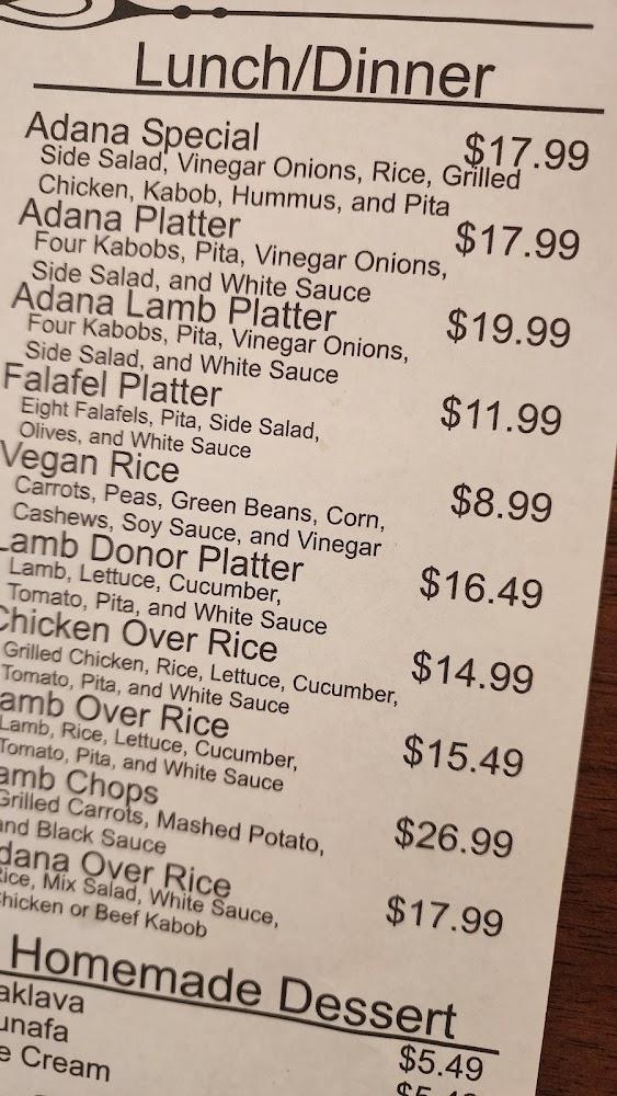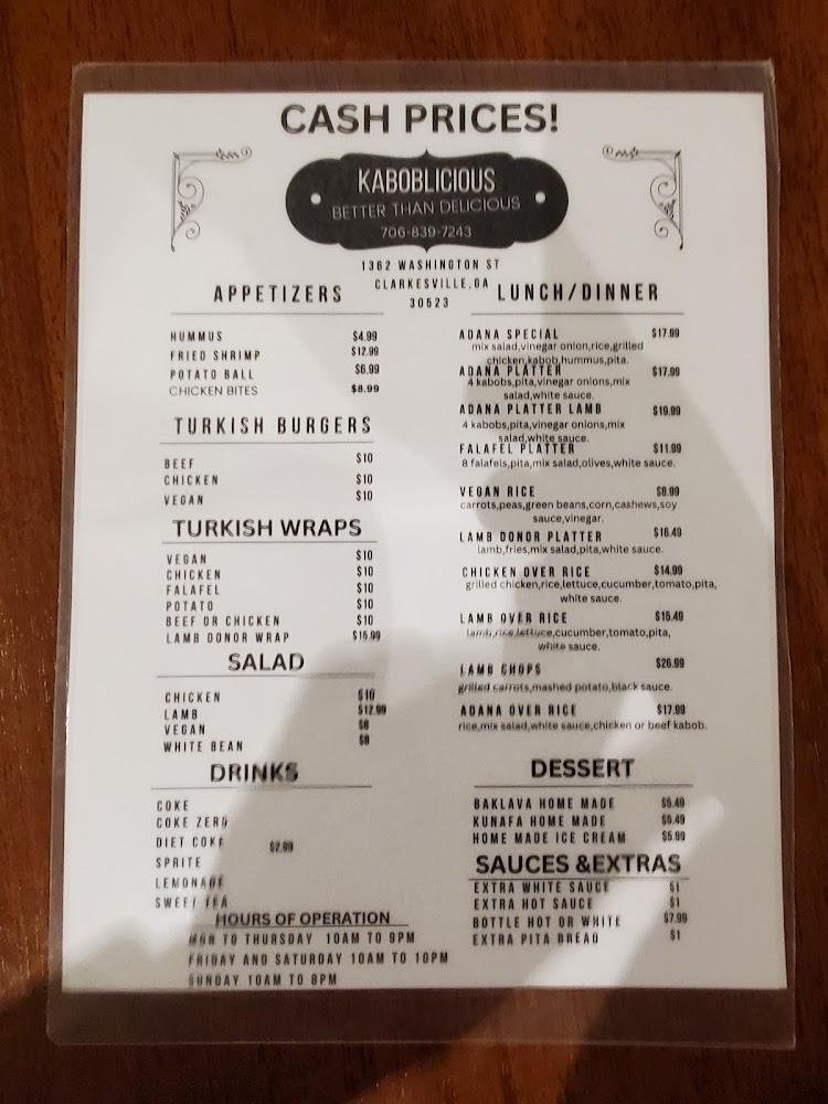 The menu at Kaboblicious showcases a delightful array of Mediterranean and Turkish flavors. Guests can find appetizers like hummus served with pita and crispy potato balls. For main courses, options such as the irresistible chicken wrap and lamb over rice stand out. Specialties like the Adana kabob leave a lasting impression. Desserts include kunafa and baklava, offering sweet endings to meals. Whether dining in, carrying out, or getting delivery, each dish reflects a commitment to authentic preparation techniques and flavors. A variety of vegetarian options ensures everyone finds something they'll enjoy.